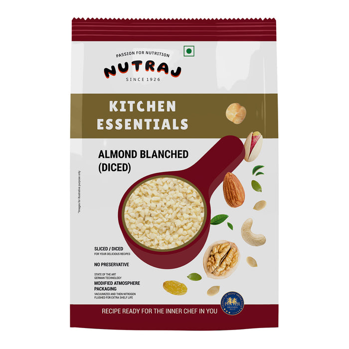 Blanched Almond Diced refers to almonds blanched to remove the skin and then