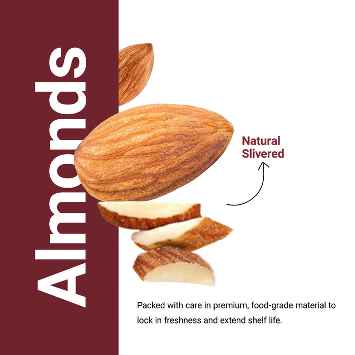 Almond Natural Slivered refers to whole almonds cut into uniform thin strips,