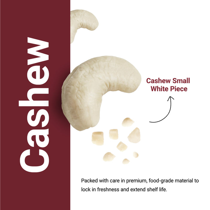 Nutraj Small White Cashew Pieces are finely chopped cashews ideal for desserts, halwa, Indian sweets, garnishing, and industrial food use. Their mild flavour and smooth crunch blend perfectly into recipes. Rich in healthy fats and essential minerals, they add nutrition and texture. Cleaned, processed, and packed hygienically to ensure consistent quality and freshness.