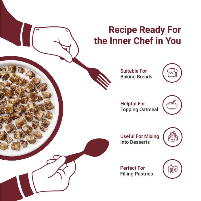 Nutraj Diced Figs offer small, soft bites of natural sweetness ideal for bakery, desserts, cereal mixes, health bars, and confectionery. High in fibre and antioxidants, they enhance both flavour and nutrition. Their convenient size makes them suitable for home kitchens and commercial use. Hygienically processed and packed for maintained freshness and quality.