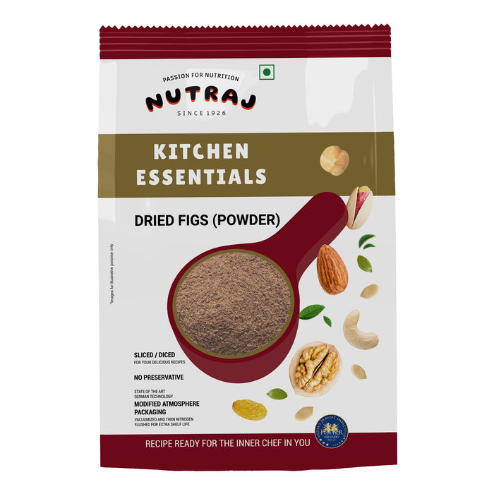 Nutraj Fig Powder is finely ground dried figs packed with natural sweetness, fibre, and minerals. Perfect for smoothies, baby foods, bakery products, health mixes, and natural sweetening. It adds depth of flavour and nutritional richness without refined sugar. Hygienically processed and packed to preserve freshness, purity, and the essence of whole figs.