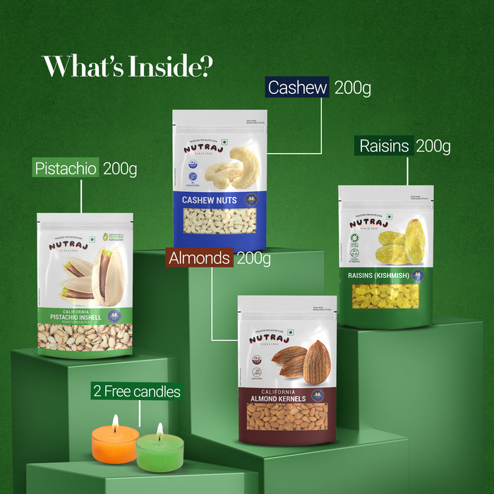 Nutraj Diwali Gift Hamper 800g With 2 Candles
