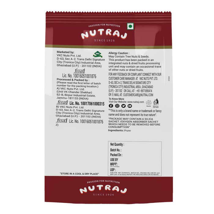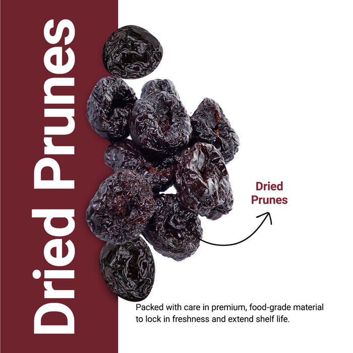 Nutraj Dried Prunes are naturally sweet, soft, and chewy dried plums known for their high fibre and antioxidant content. They support digestion, bone health, and natural energy. Perfect for snacking, breakfasts, salads, desserts, and culinary preparations, prunes add flavour and nourishment. Hygienically pitted, processed, and packed to preserve moisture, freshness, and purity.