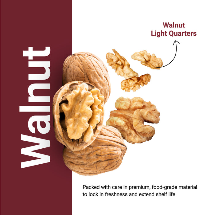 Walnut Quarter Halves, known as 4-Piece walnuts, are kernels that break into four