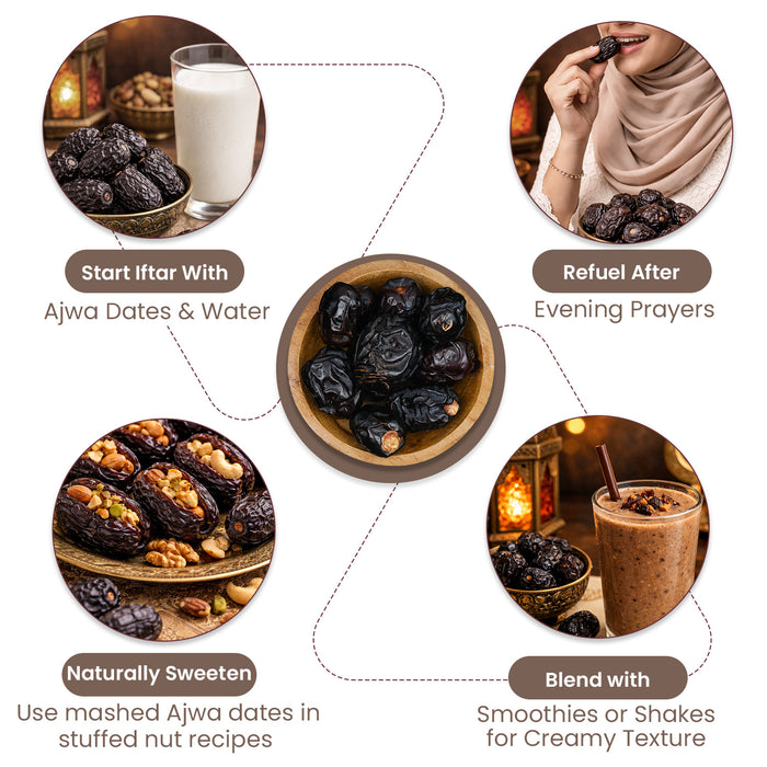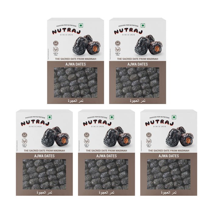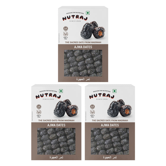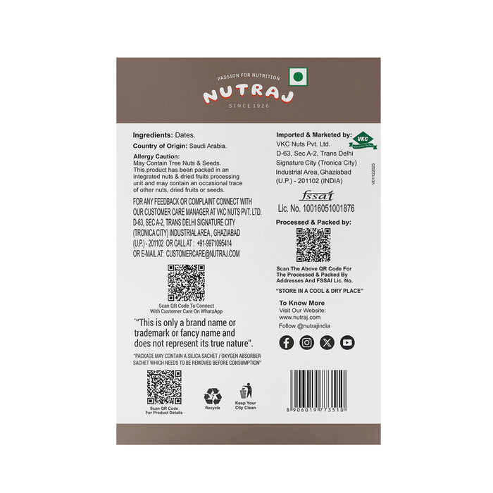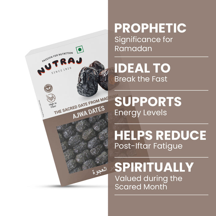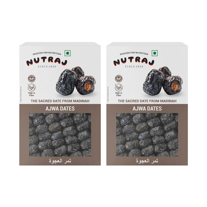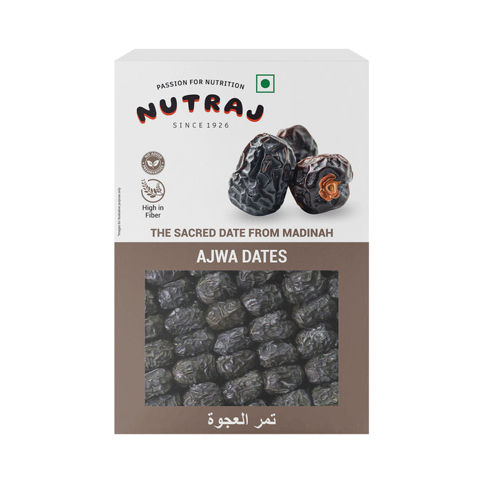Relish the authentic taste of the with Nutraj Ajwa Dates 200gm. Known for their soft texture, deep color and natural sweetness, Ajwa dates are one of the most prized varieties from the Middle East rich in tradition, flavor, and nutrition.
