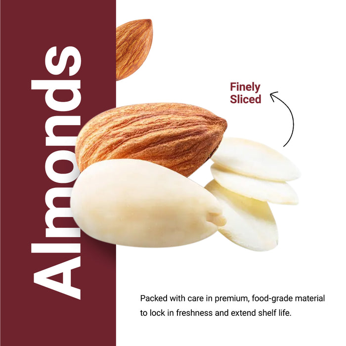Blanched Almond Sliced consists of almonds that are blanched to remove the skin