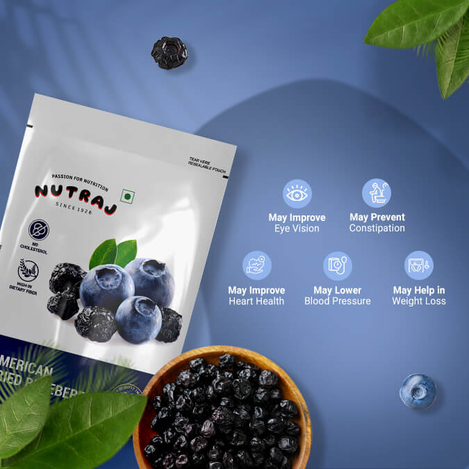 Indulge your taste buds and gratify cravings with the delightful flavour s of Nutraj Dried American Blueberries. Whether you enjoy them as a solo snack or incorporate them into other recipes, these dried blueberries will surely please your health. These foods are often called nutritional powerhouses because they are high in antioxidants, fiber, vitamins C and K, and low in calories. So, why wait? Incorporate Nutraj Dried American Blueberries to enjoy a tasty and nutritious addition. Shop Now!